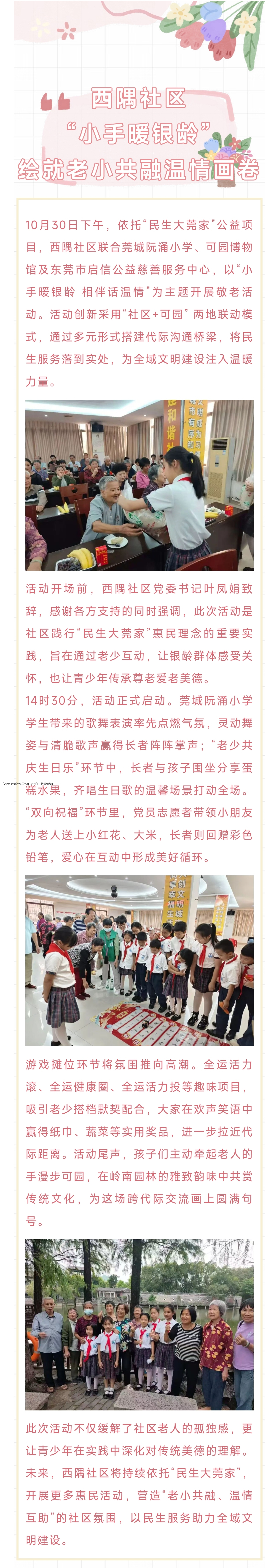 【民生大莞家】西隅社区“小手暖银龄”,绘就老小共融温情画卷
