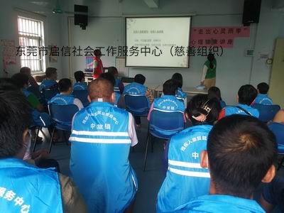 活动开始,志愿者协助学员签到,接着社工介绍活动内容、目的和流程,袁医生和梁医生做简单的自我介绍。活动过程,社工与志愿者现场派发关于提升心理健康素养的宣传画册。学员看着画册听着袁医生用PPT讲解非常认真。袁医生从三大方面讲解:1、学会关注与调节自我情绪 2、多劳动,多锻炼 3、提高表达能力,积极参与社交,梁医生协助袁医生知识补充。社工在旁边引导学员自我检查自己情绪,指导学员把调节自己情绪的方法应用在日常生活当中。最后讲座结束,志愿者协助派发活动礼品,两名医生继续留下解答所有学员的心理健康疑问。