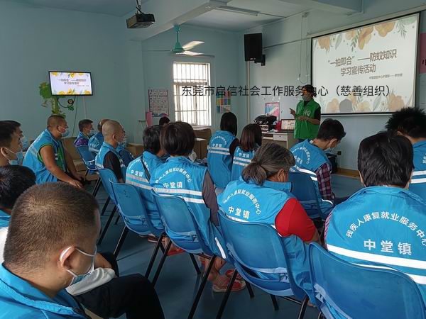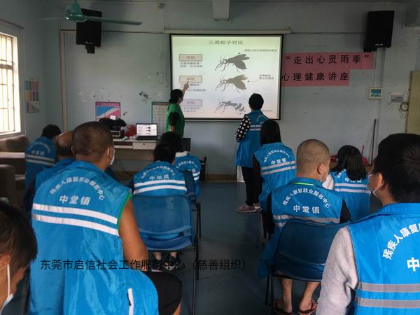 为了提高残障人士的预防蚊咬的意识,让他们学习更好的防蚊知识,为此,东莞启信驻中堂康就中心护理师于2021年10月14日开展了“一拍即合”——防蚊知识学习宣传活动,通过活动宣传,向中心学员宣传灭蚊防蚊的相关知识,提高学员的灭蚊防蚊意识,降低感染疾病的几率,让他们学到更多的生活小技巧,活动更健康。