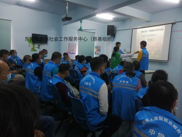 在日常的服务的过程中,发现学员在文明礼仪知识方面比较薄弱。为提高学员的文明礼仪意识,促使学员养成良好的行为习惯,因此东莞启信驻中堂镇残疾人康复就业服务中心社工,于2021年10月19日上午举行“我是好公民”中堂康就礼仪学习活动。