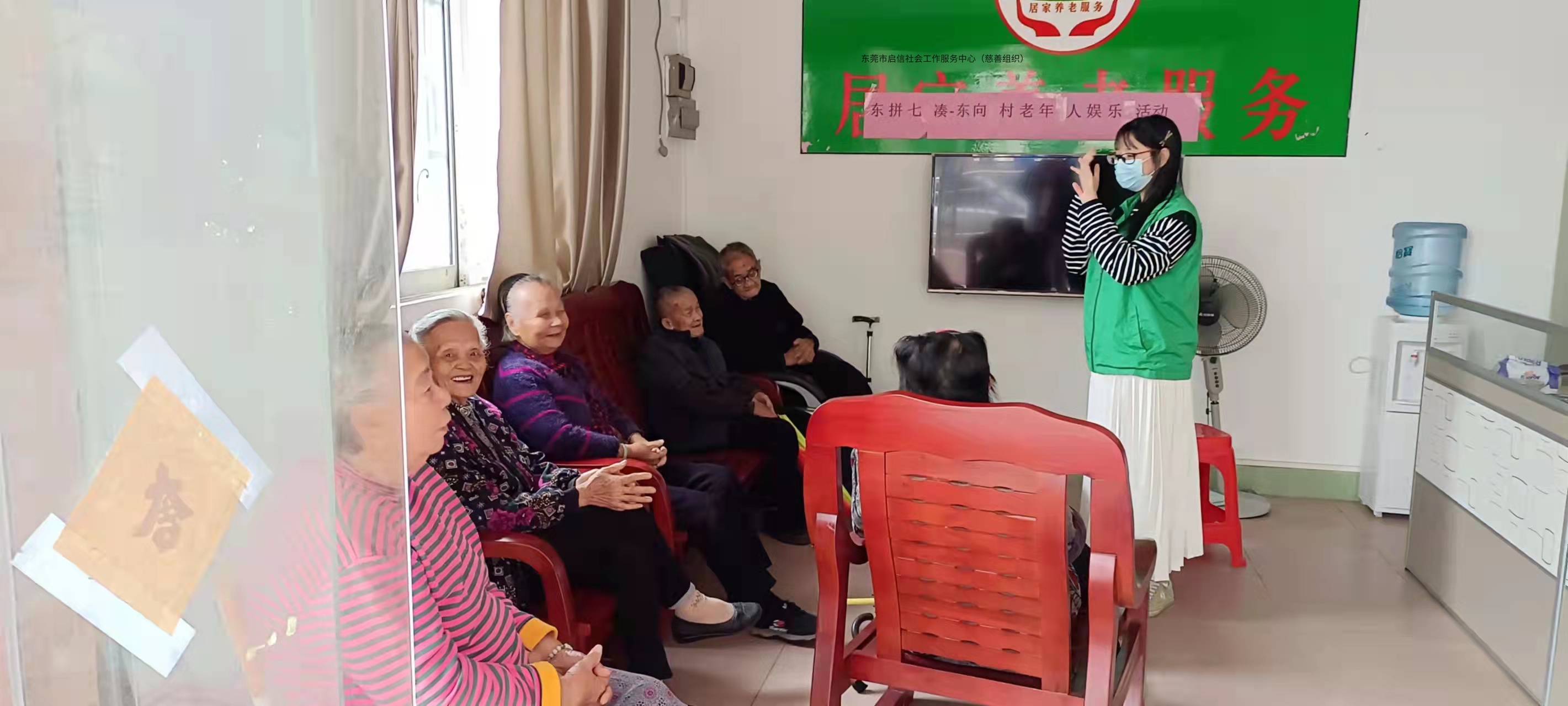 从服务对象的服务调查问卷中,了解到村社区里的活动休闲场所的场地较少,公共娱乐设备的不足,因此居家养老为服务对象提供娱乐性服务,在活动参与中增强服务对象们彼此间的关系,扩大他们的交友圈子,让他们拥有一个健康、丰富多彩的老年生活。故东莞市启信社工驻中堂镇居家养老社工决定于2021年10月27日在东向村开展“东拼七凑”东向村老年人娱乐活动。