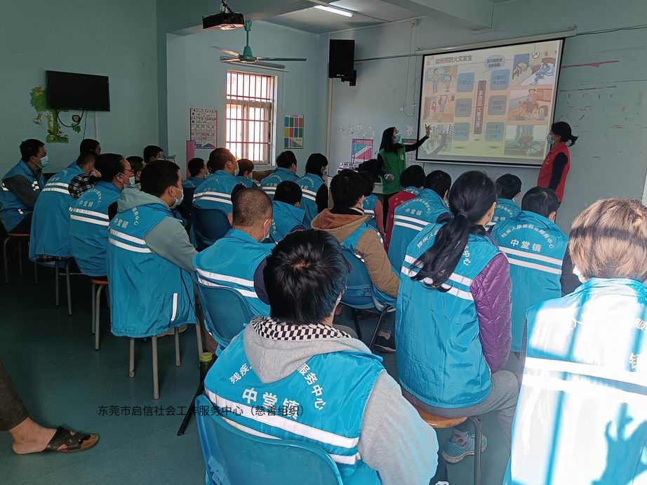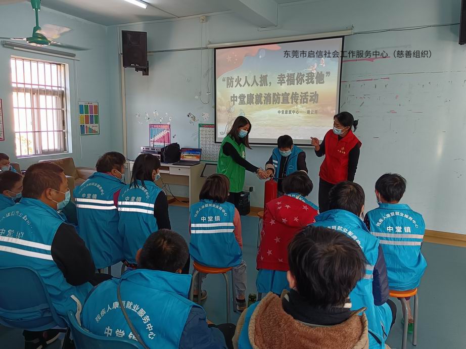 随着一年一度的11·9消防宣传日的到来,对中心学员进行消防安全知识教育,是我们中心工作人员义不容辞的责任。在发生火灾时中心学员由于生理、心理等客观因素,更容易受到危害。而且在日常服务中了解到中心大部分学员的安全意识淡薄,消防常识缺乏。因此对学员进行消防知识教育刻不容缓。东莞市启信公益慈善服务中心驻中堂镇残疾人康复就业服务中心康复师于2021年11月11日开展“防火人人抓,幸福你我他”中堂康就消防宣传活动。