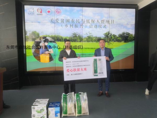 东莞市启信公益慈善服务中心在了解到贵州省铜仁市贫困农民稻米生产滞销等问题,毅然通过公开募捐方式发动社会爱心企业、协会、个人为铜仁市贫困农民募捐款项、于此同时把扶贫爱心大米送到东莞市在册登记的低保户手中。
