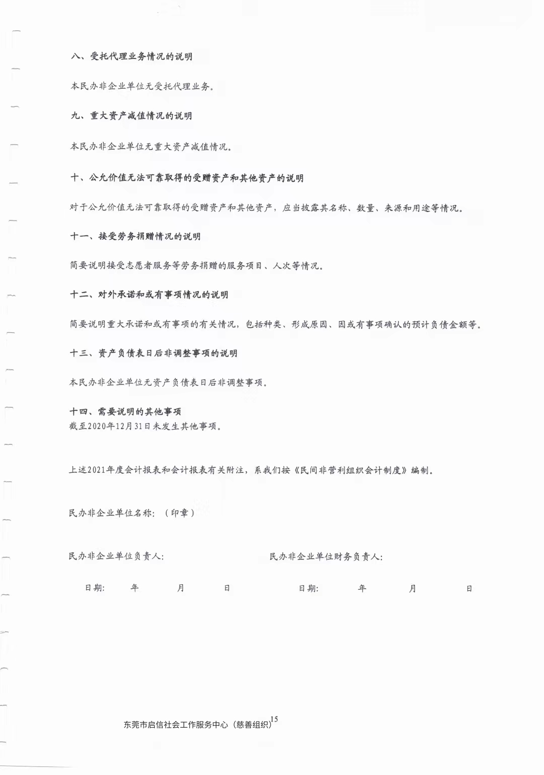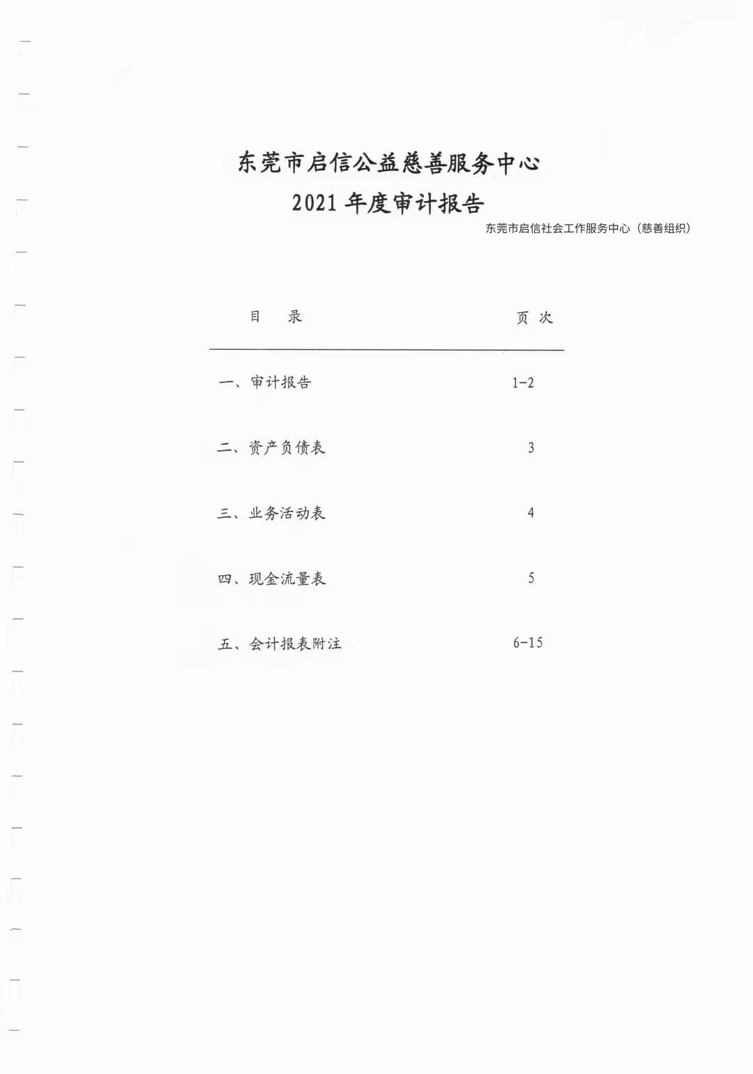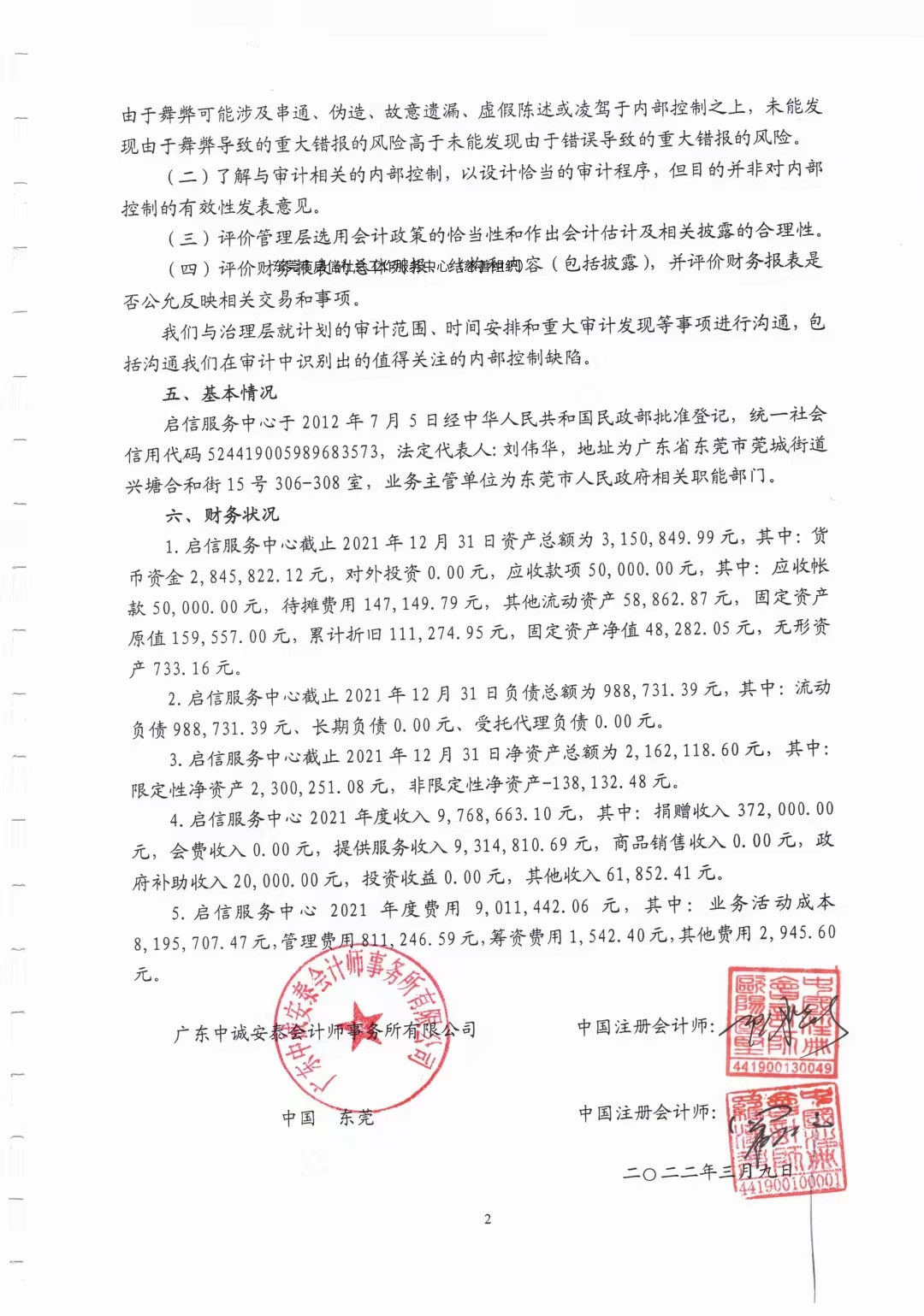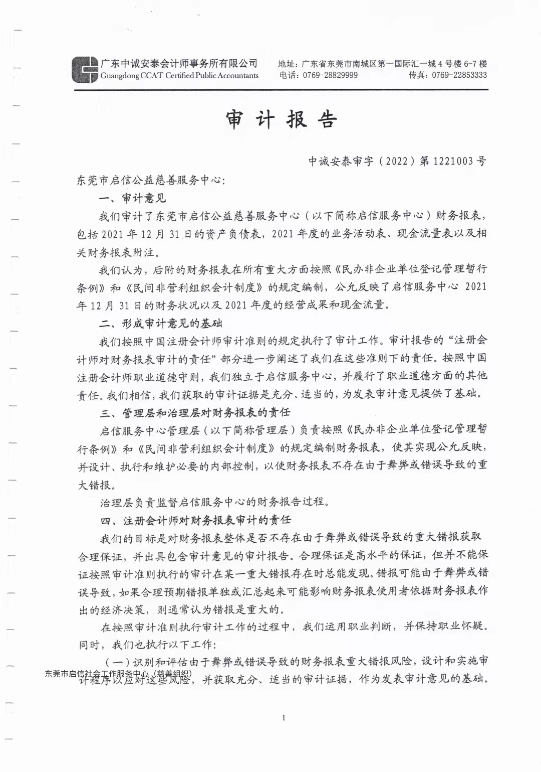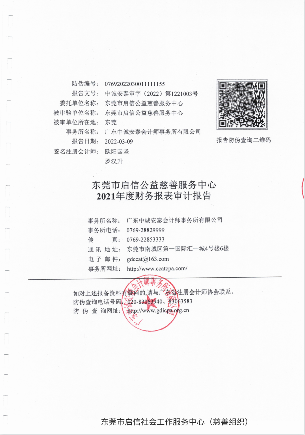 东莞市启信公益慈善服务中心2021年财务报表审计报告