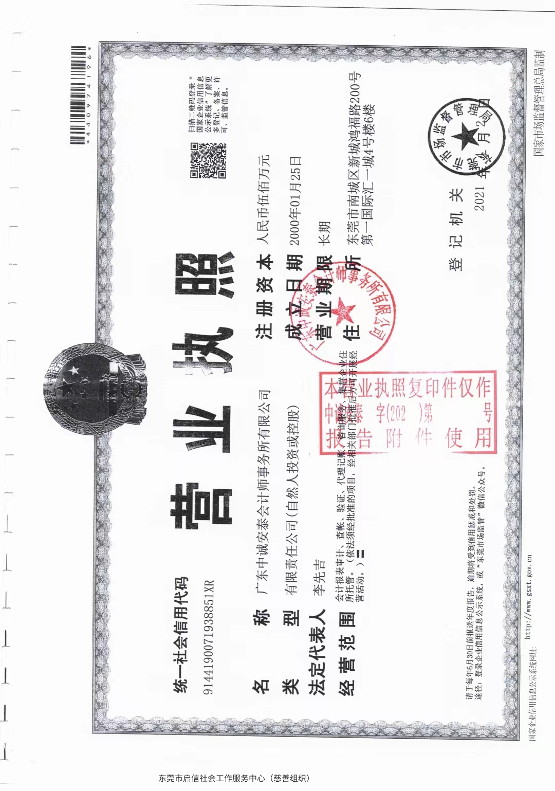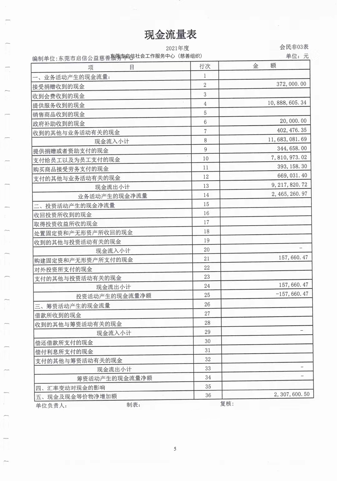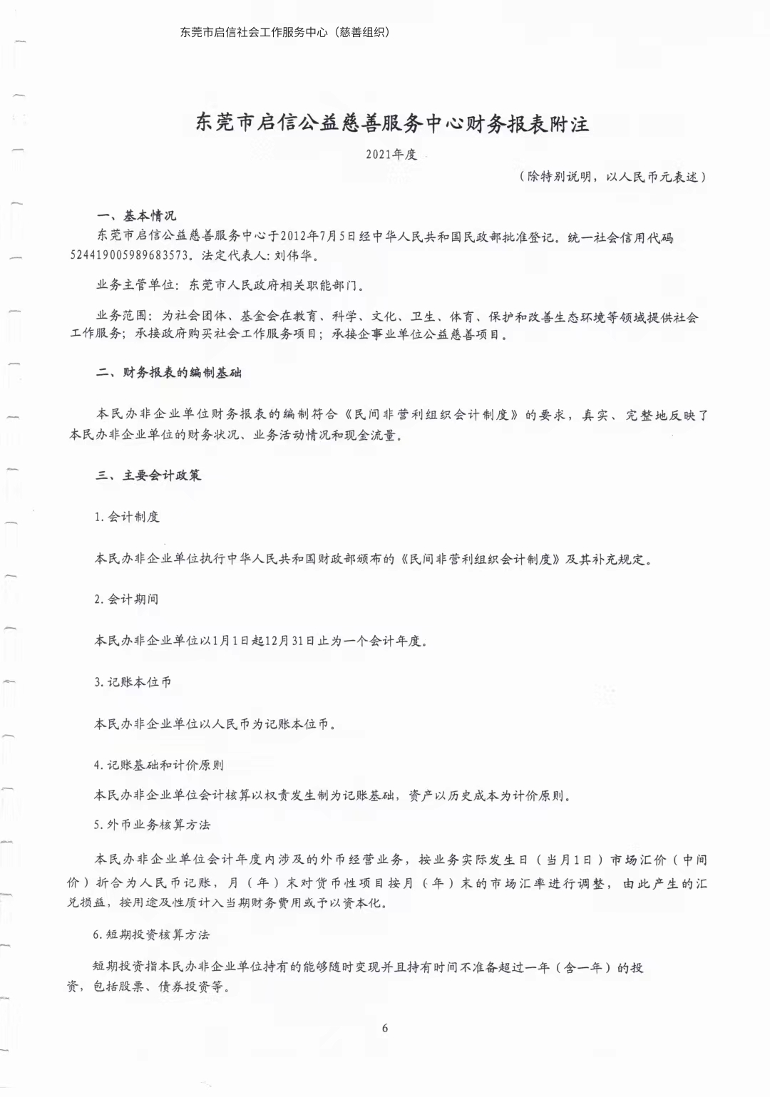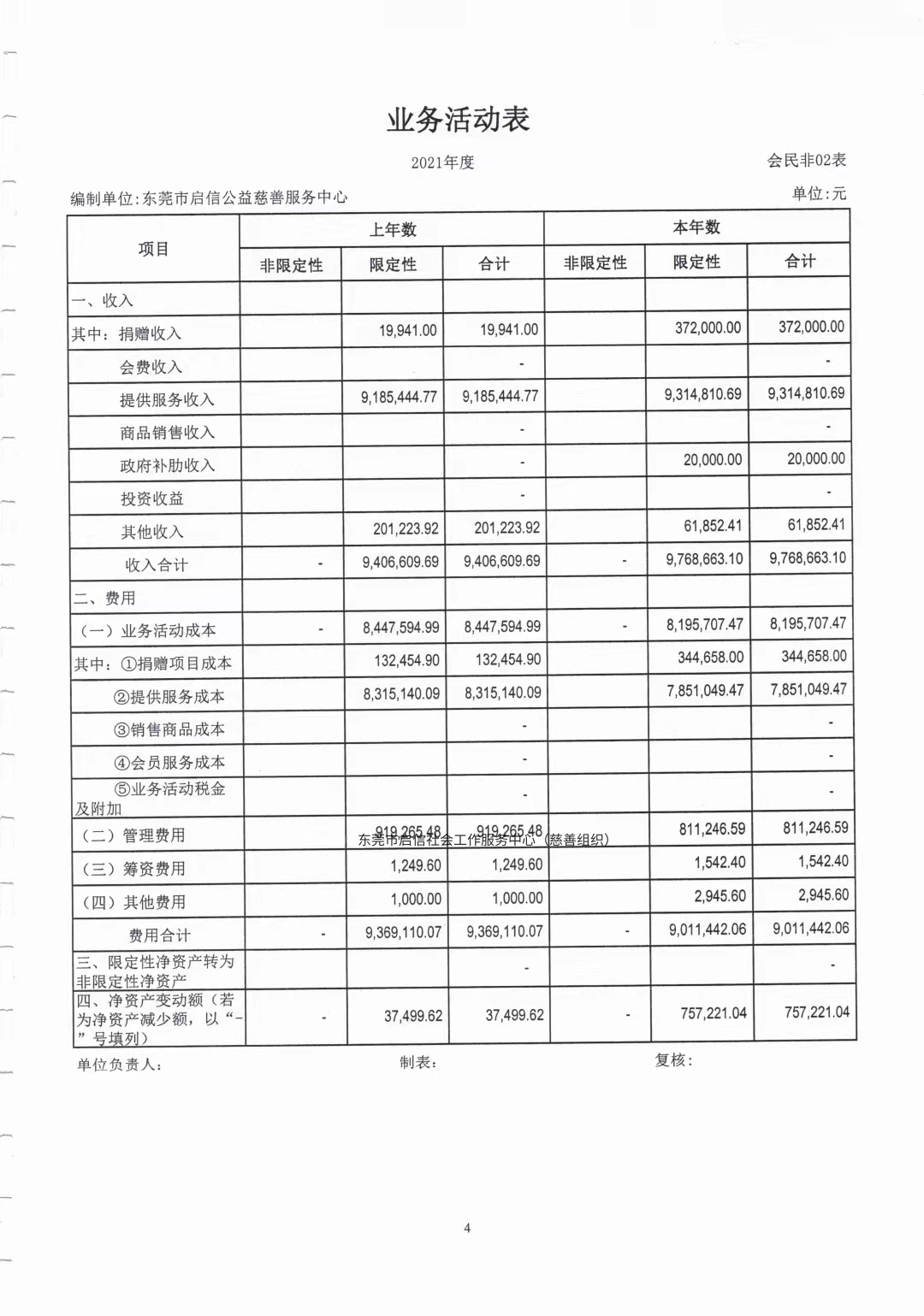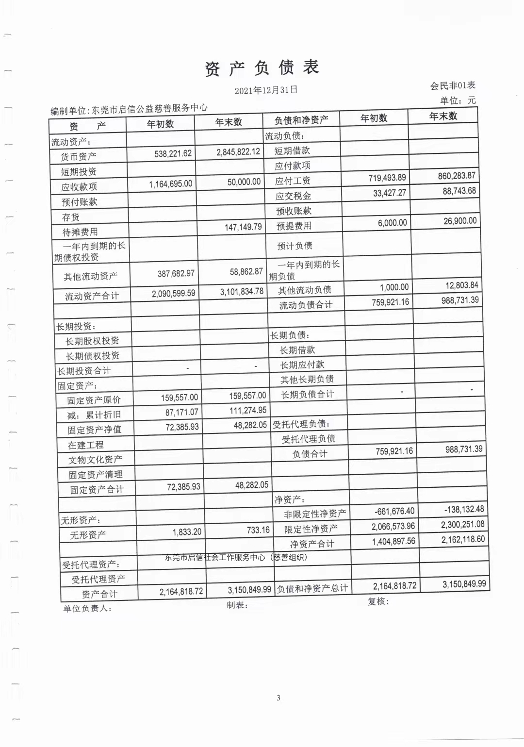 东莞市启信公益慈善服务中心2021年财务报表审计报告