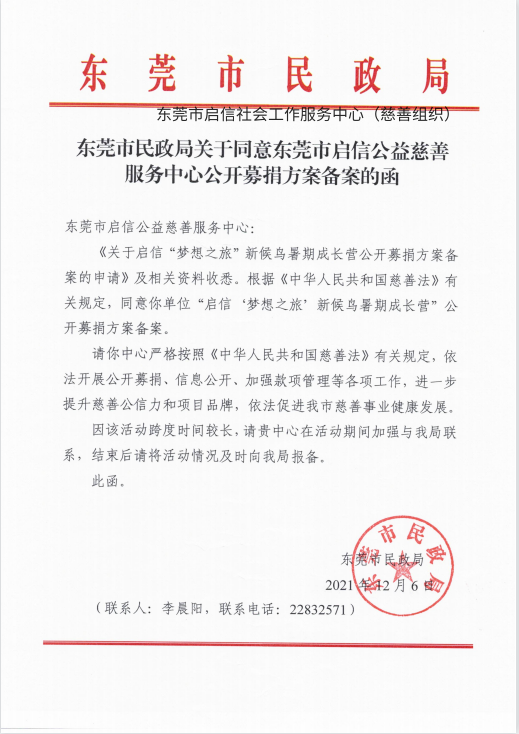 启信”梦想之旅“新候鸟暑期成长营项目公开募捐活动